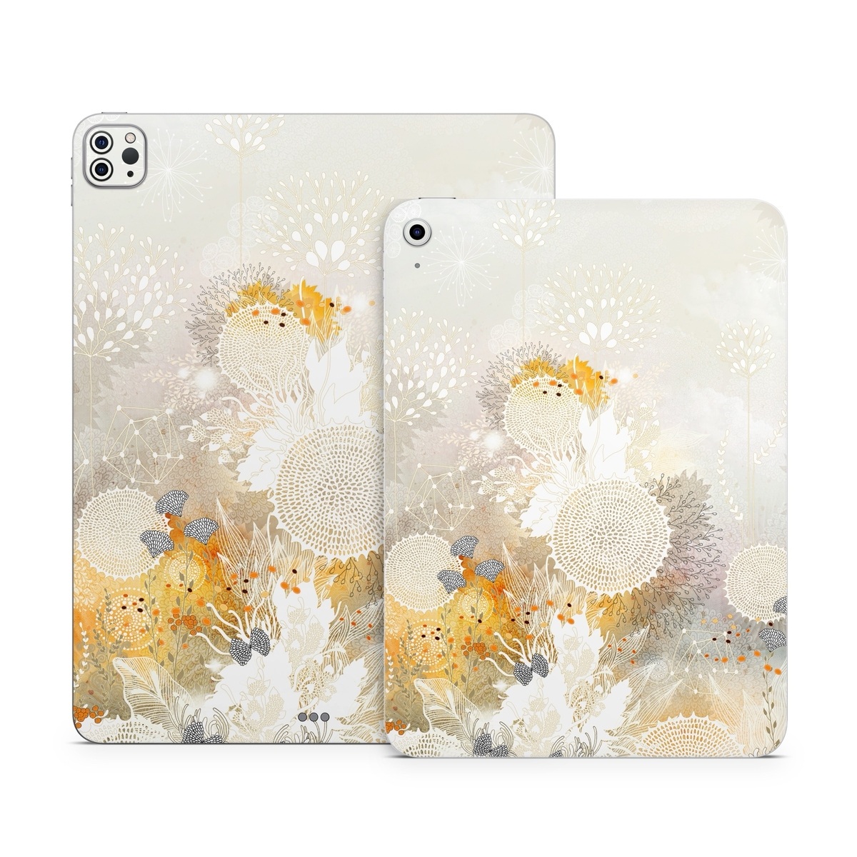 iStyles Apple iPad Series Skin design of Pattern, Floral design, Flower, Plant, Illustration, camomile, Wildflower, Art, with gray, yellow, pink, white, green colors, and tagged with patterns, nature, flowers.
