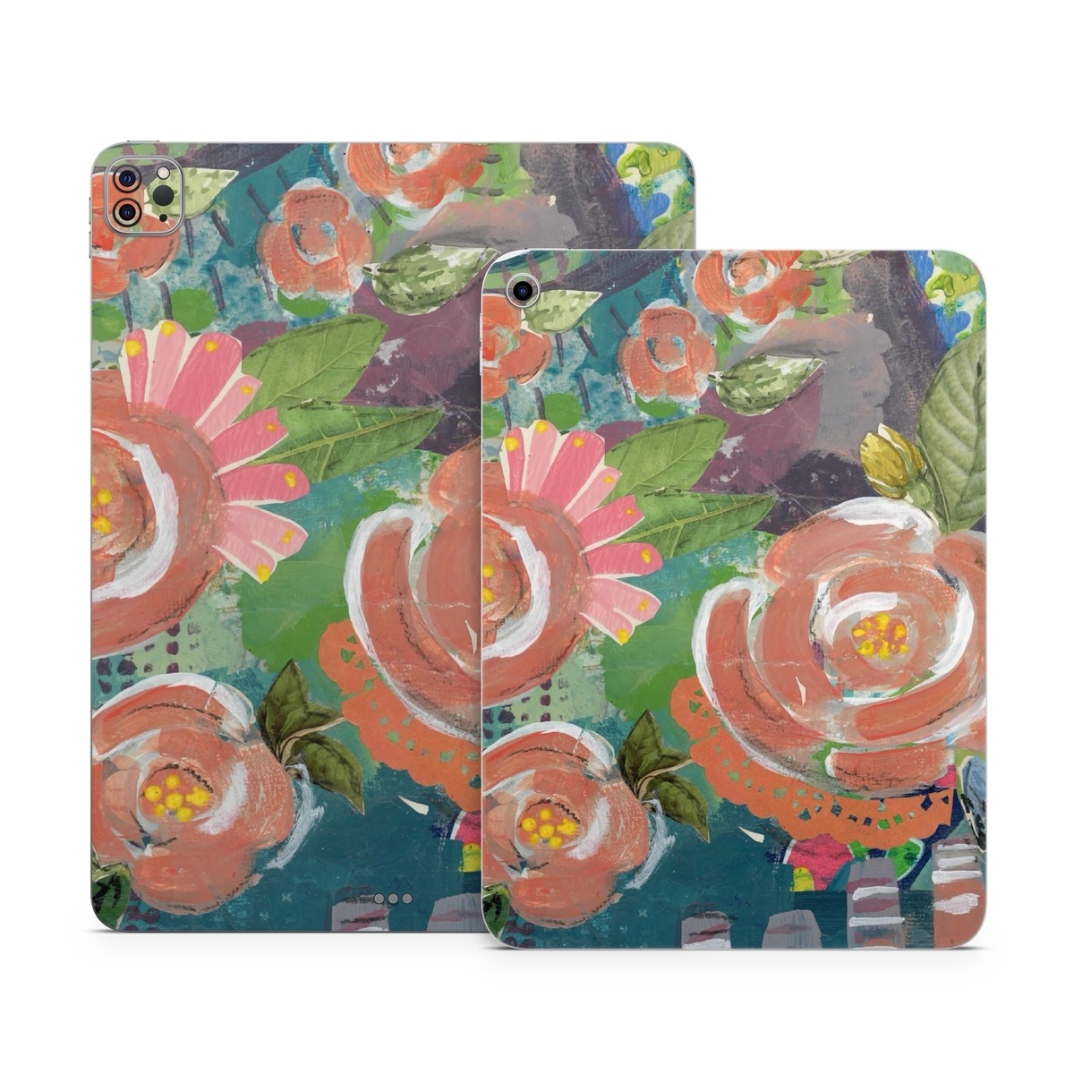 iStyles Apple iPad Series Skin design of Painting, Watercolor paint, Still life, Child art, Art, Illustration, Acrylic paint, Flower, Visual arts, Textile, with green, pink, red, yellow, blue, white, black, gray colors, and tagged with flowers, abstract, bright, flowers, nature, paint.