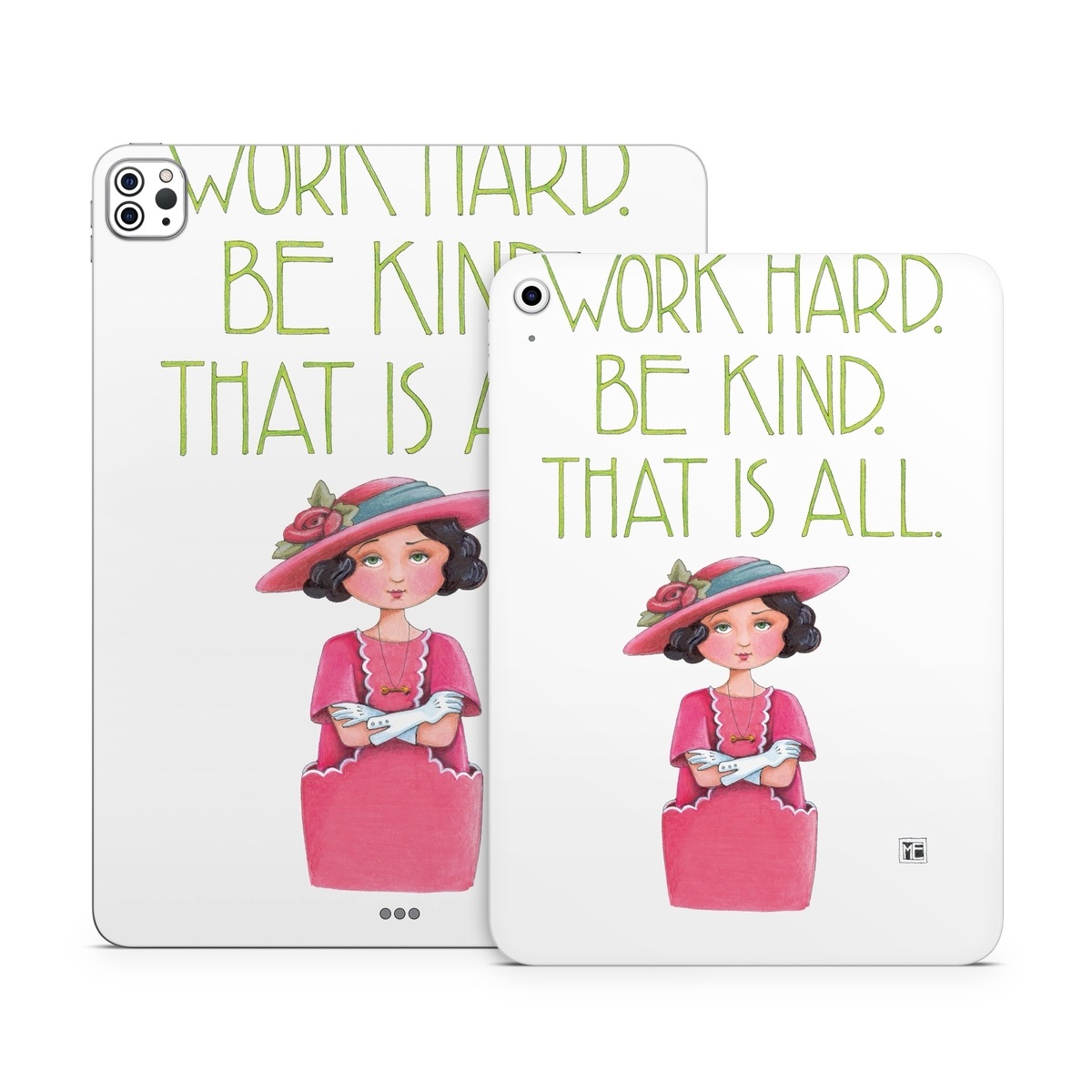 iStyles Apple iPad Series Skin design of Pink, Headgear, Font, Hat, with white, green, pink, black, white, yellow, blue colors, and tagged with signs, flowers, people, objects, cartoon, classy, draw, drawing, girl, green, lady, pink, woman, kind.