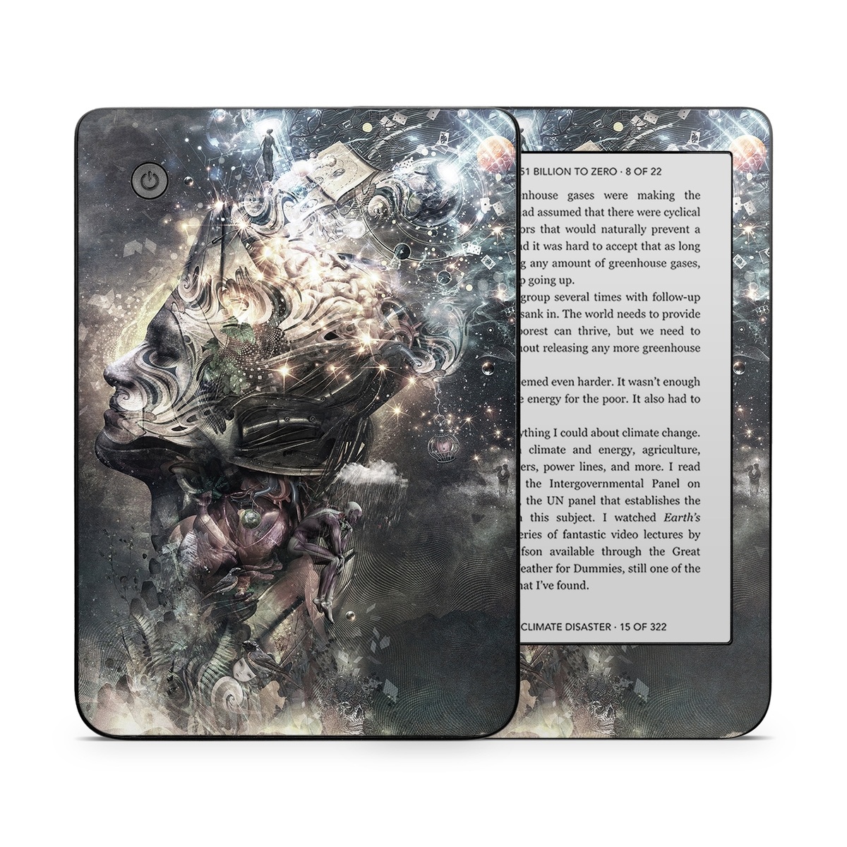 iStyles Kobo Clara 2E Skin design of Space, Cg artwork, Art, Sky, Darkness, Illustration, Graphic design, Outer space, Graphics, Animation, with white, black, gray, yellow colors, and tagged with fantasy, space, celestial, fantasy, galactic, sci-fi, surreal.