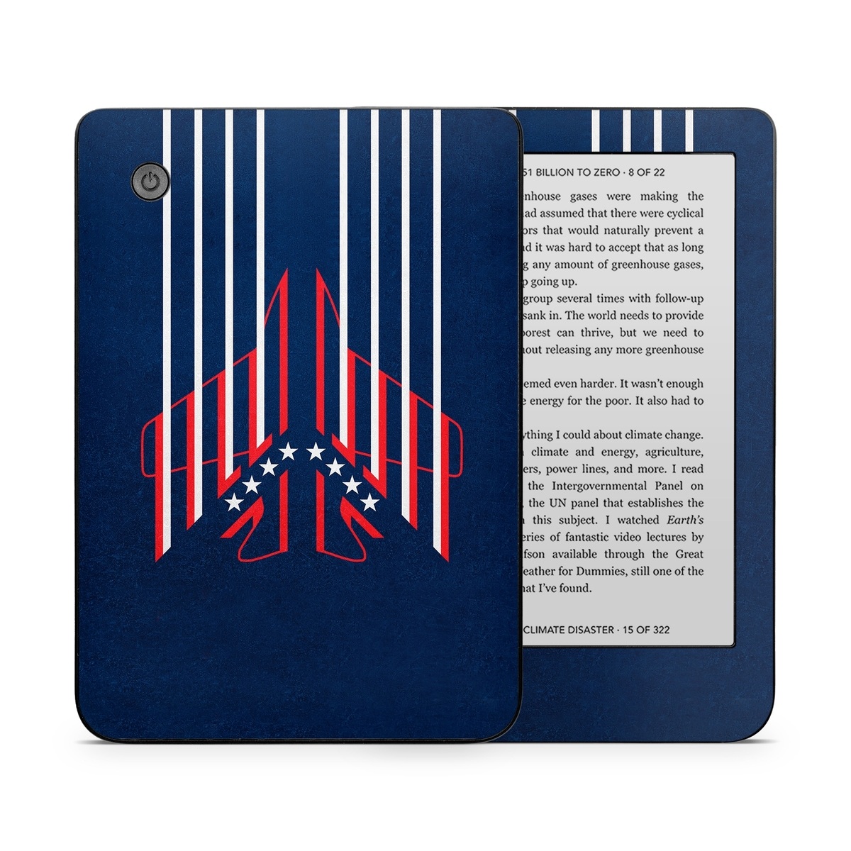 iStyles Kobo Clara 2E Skin design of Sleeve, Font, Motor vehicle, T-shirt, Emblem, Poster, Electric blue, Symmetry, Symbol, Pattern, with blue, red, white colors, and tagged with objects, military, patterns, danger, dangerzone, jet, maverick, topgun.
