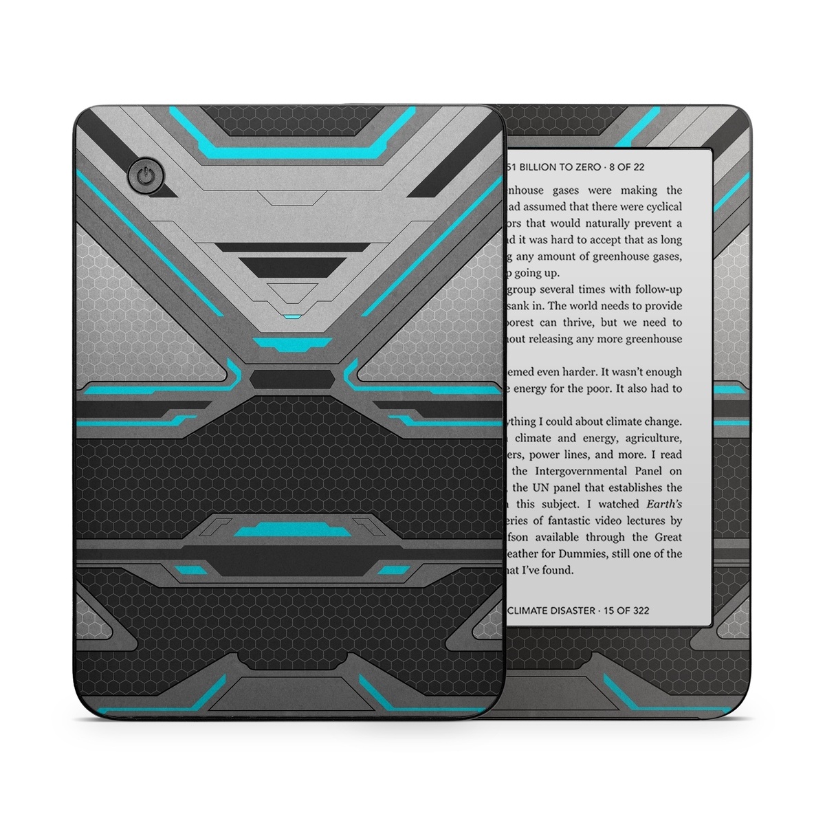 iStyles Kobo Clara 2E Skin design of Blue, Turquoise, Pattern, Teal, Symmetry, Design, Line, Automotive design, Font, with black, gray, blue colors, and tagged with patterns.