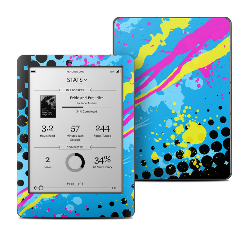 iStyles Kobo Glo Skin design of Blue, Colorfulness, Graphic design, Pattern, Water, Line, Design, Graphics, Illustration, Visual arts, with blue, black, yellow, pink colors, and tagged with abstract, patterns.