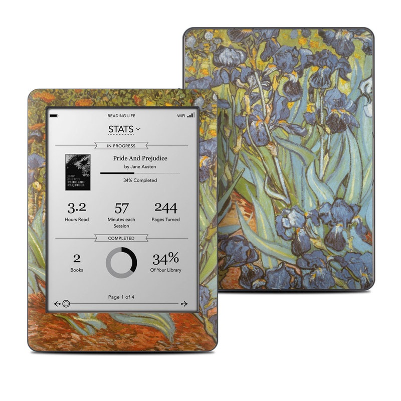 iStyles Kobo Glo Skin design of Painting, Plant, Art, Flower, Iris, Modern art, Perennial plant, with gray, green, black, red, blue colors, and tagged with fineart, flowers.