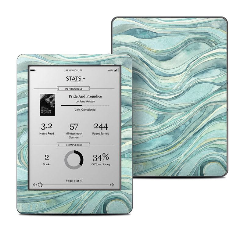 iStyles Kobo Glo Skin design of Aqua, Blue, Pattern, Turquoise, Teal, Water, Design, Line, Wave, Textile, with gray, blue colors, and tagged with patterns.