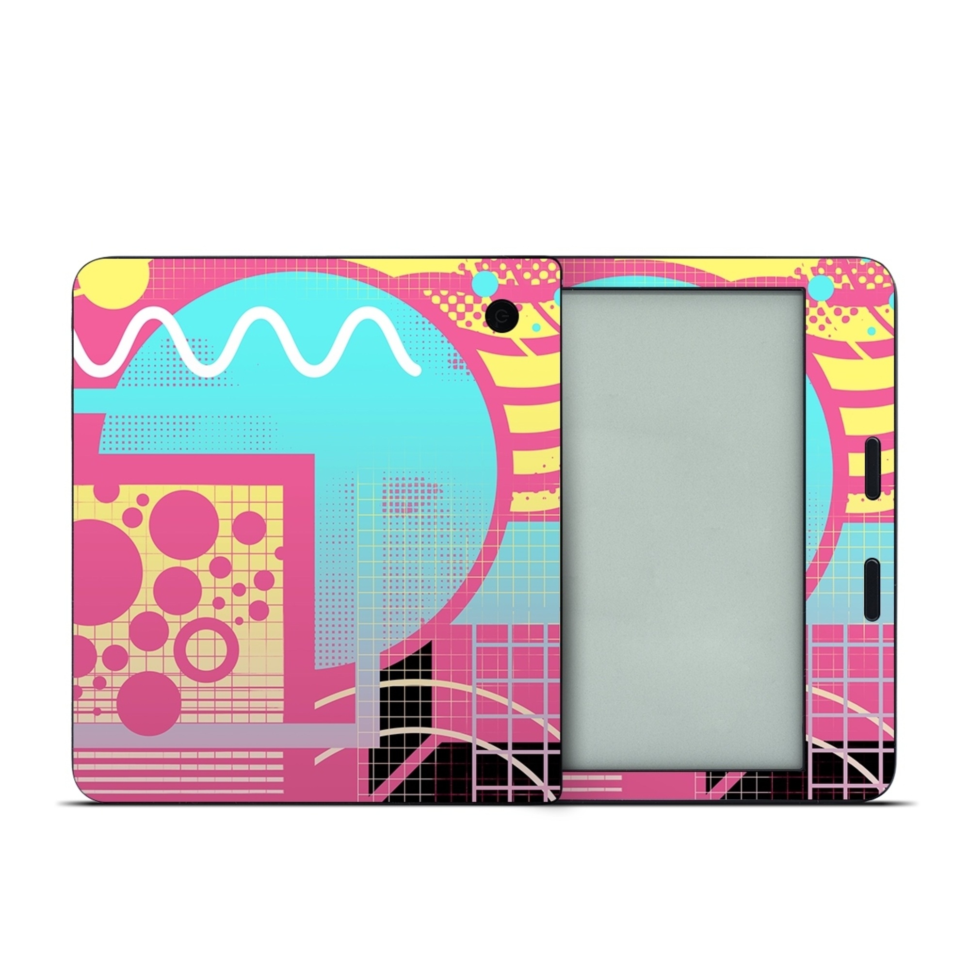iStyles Kobo Libra 2 Skin design of Textile, Organism, Font, Art, Pink, Rectangle, Line, Aqua, Magenta, Circle, with pink, yellow, blue, black, white colors, and tagged with abstract, abstract, waves, circle, square, lines.