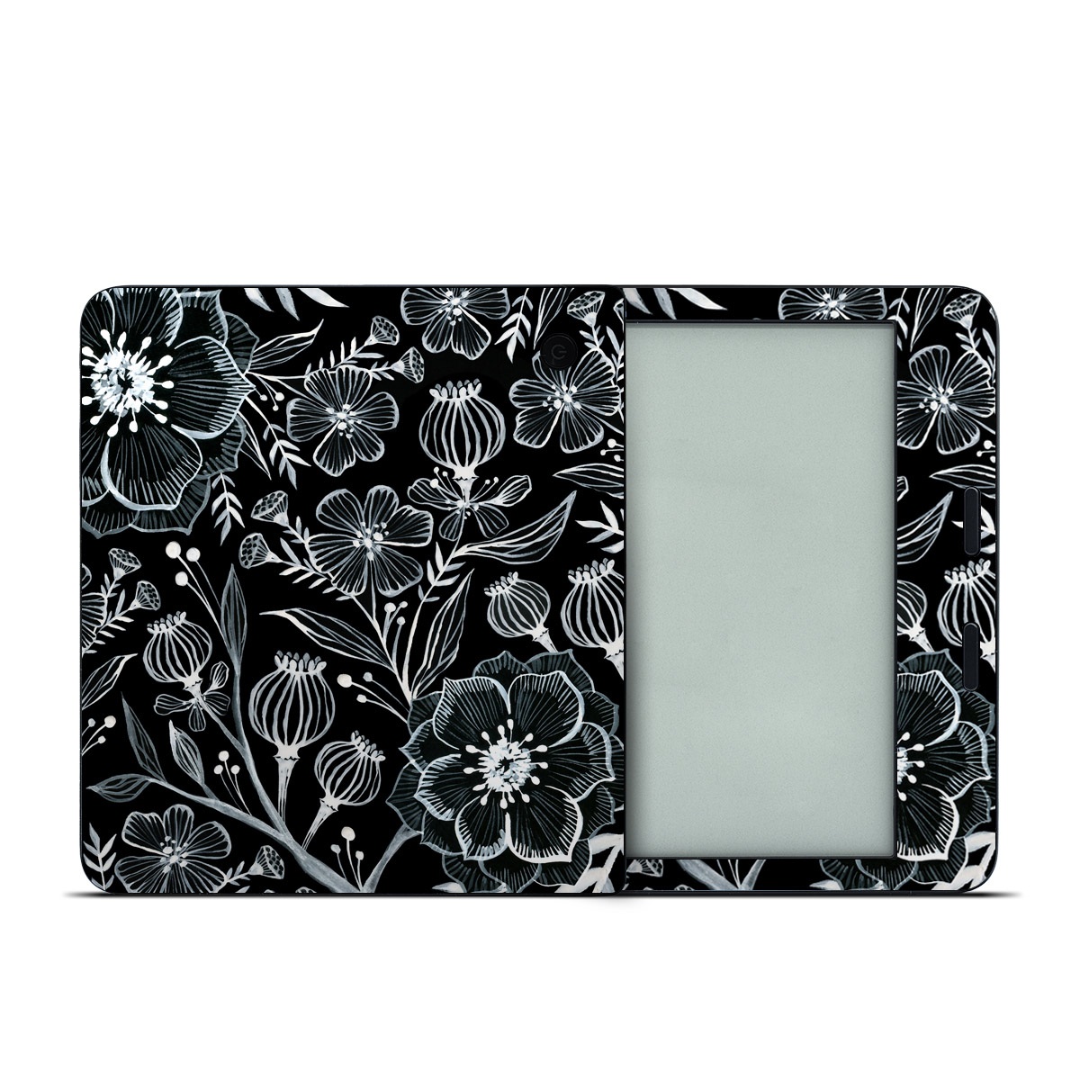 iStyles Kobo Libra 2 Skin design of Pattern, Black-and-white, Flower, Monochrome photography, Plant, Design, Monochrome, Botany, Wildflower, Visual arts, with black, white colors, and tagged with flowers, patterns, blackandwhite, botanical, floral, flowerpattern, flowers.