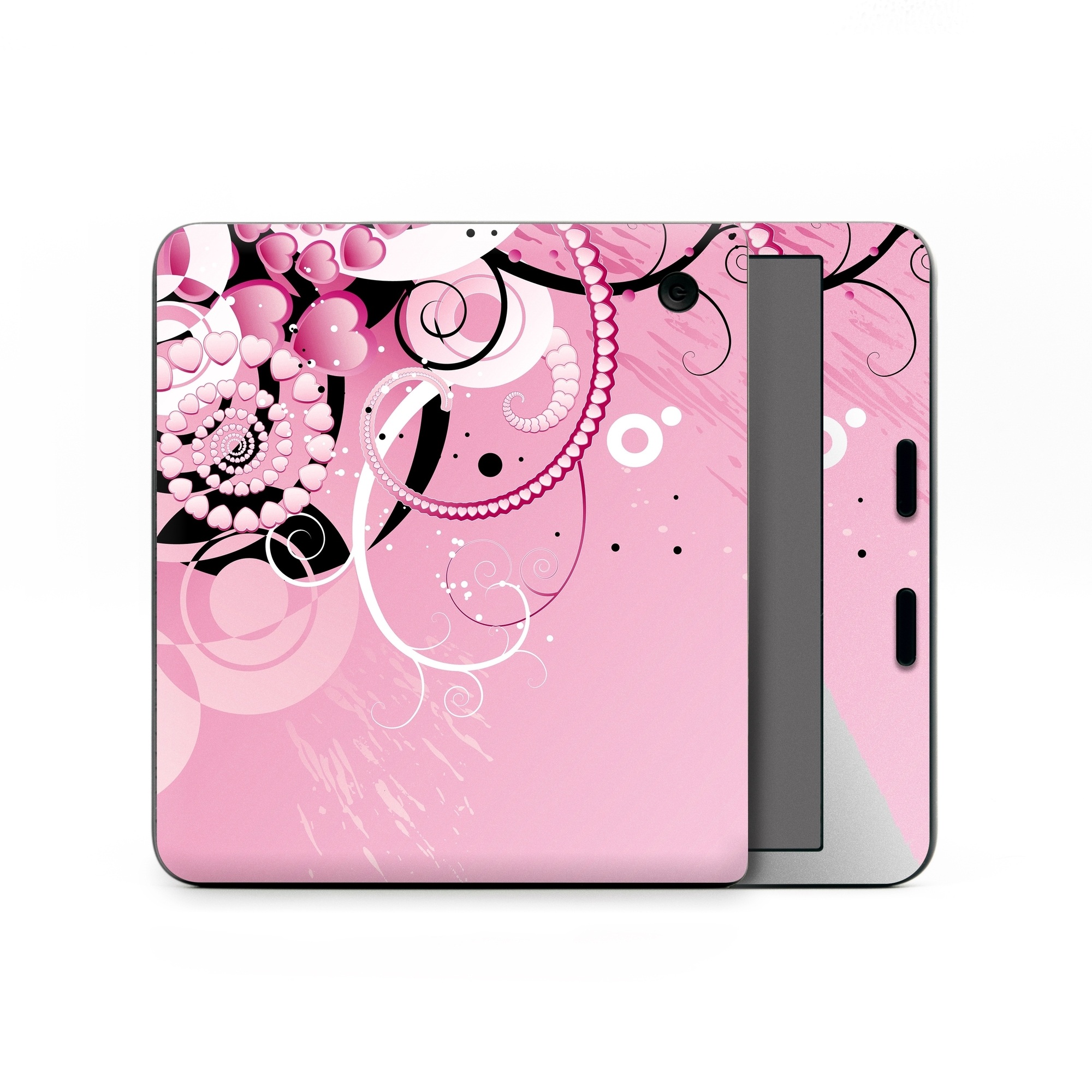 iStyles Kobo Libra Colour Skin design of Pink, Floral design, Graphic design, Text, Design, Flower Arranging, Pattern, Illustration, Flower, Floristry, with pink, gray, black, white, purple, red colors, and tagged with abstract, hearts.